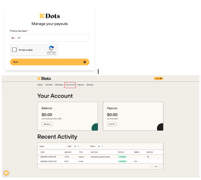 If you do not meet the threshold, you will not receive a tax form, and the Documents tab will remain empty.