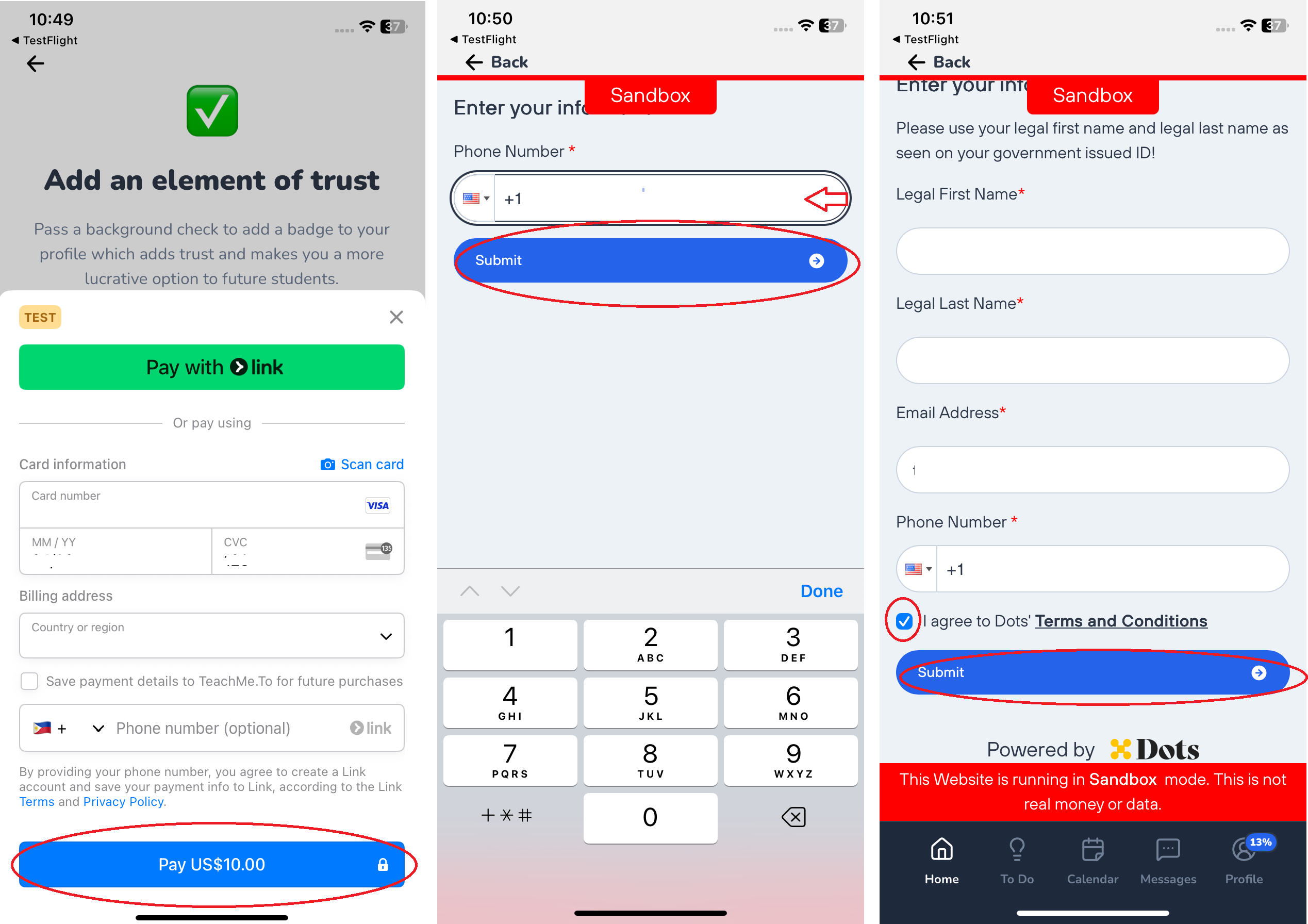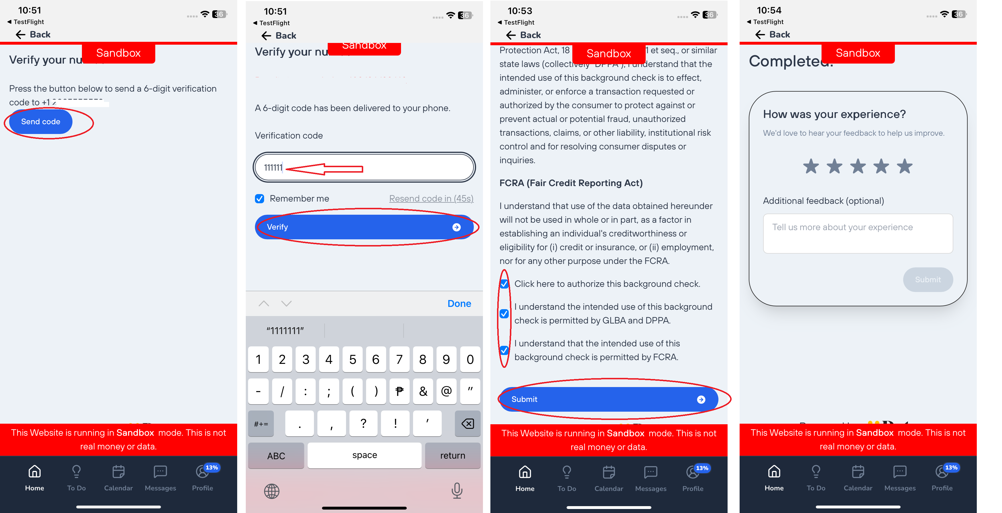 - Tap Submit again to finalize the background check