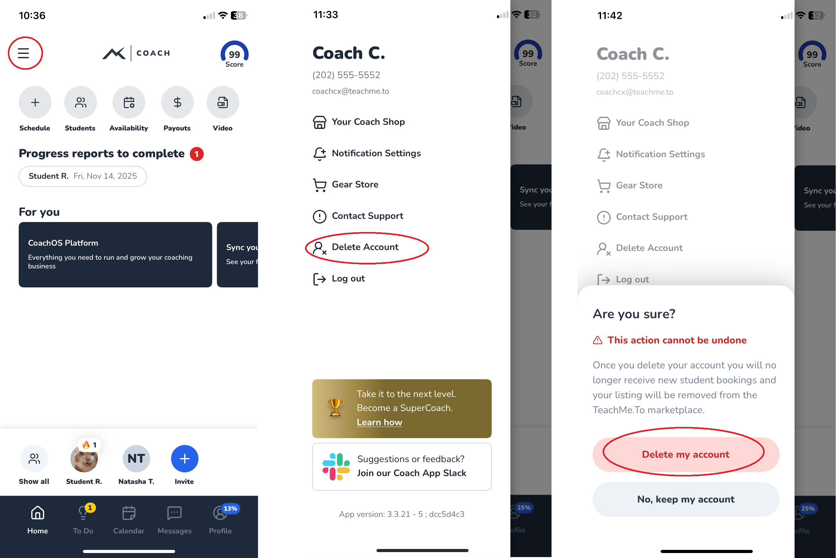 If you want to permanently remove your coach profile from TeachMe.To, you can delete your account directly through the Coach App.